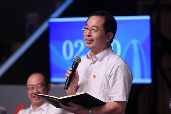 人民日?qǐng)?bào)社機(jī)關(guān)黨委常務(wù)副書記魏建周向選手提問