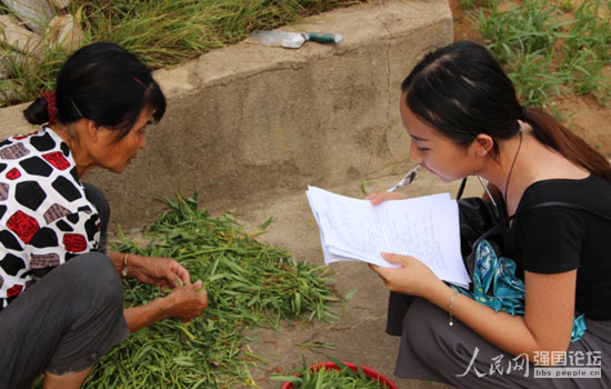 閩江學(xué)院大學(xué)生走進(jìn)田間地頭做問(wèn)卷調(diào)查。
