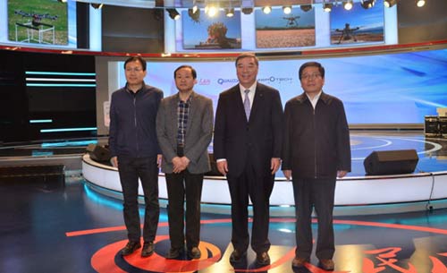 (從左至右)國資委新聞中心副主任蘇桂鋒、人民網(wǎng)總編輯余清楚、中國建筑材料集團董事長宋志平、國家網(wǎng)信辦網(wǎng)絡(luò)新聞信息傳播局副局長侯云灝
