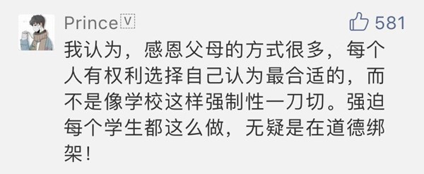 網(wǎng)友“Prince”:強(qiáng)迫所有學(xué)生都這樣做,無(wú)疑是道德綁架。