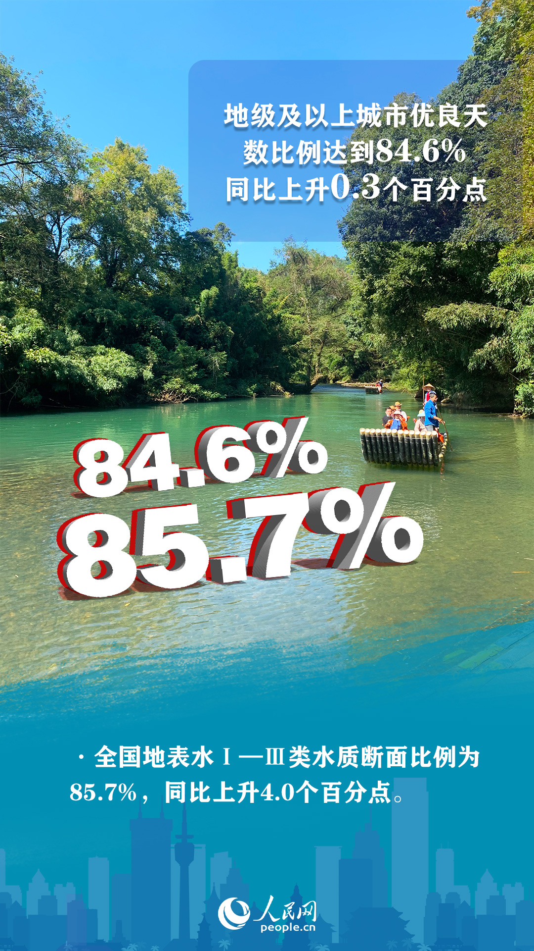 推進(jìn)重大工程實(shí)施。繼續(xù)加快實(shí)施“十四五”規(guī)劃102項(xiàng)重大工程中大氣、水、土壤、固體廢物污染防治和核與輻射安全監(jiān)管等生態(tài)環(huán)境領(lǐng)域重大工程項(xiàng)目。今年上半年,全國生態(tài)環(huán)境質(zhì)量持續(xù)改善。其中,地級及以上城市優(yōu)良天數(shù)比例達(dá)到84.6%,同比上升0.3個(gè)百分點(diǎn)。全國地表水Ⅰ—Ⅲ類水質(zhì)斷面比例為85.7%,同比上升4.0個(gè)百分點(diǎn)。