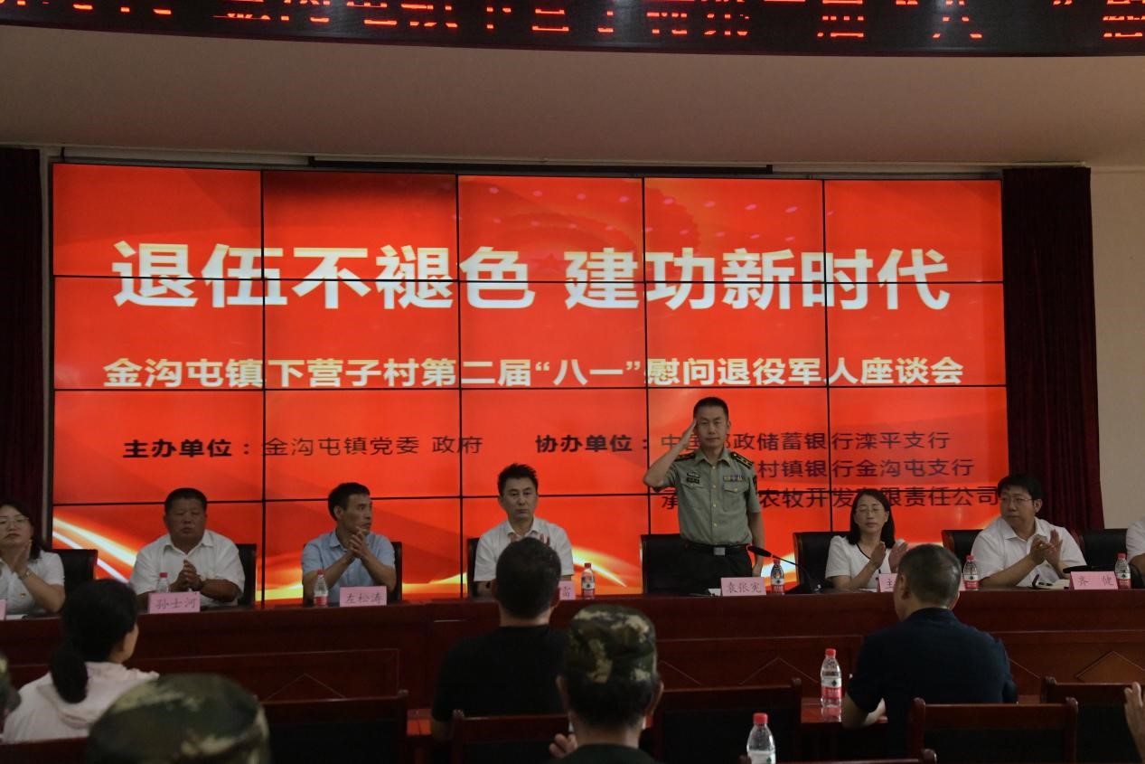 8月1日下午,灤平縣金溝屯鎮(zhèn)下營子村聯(lián)合愛心企業(yè)中國郵政儲蓄銀行灤平支行、灤平盛陽村鎮(zhèn)銀行金溝屯支行和承德久財農(nóng)牧開發(fā)有限責(zé)任公司共同舉辦了“退伍不褪色 建功新時代”第二屆“八一”慰問退役軍人座談會;顒蝇F(xiàn)場,大家歡聚一堂,共同慶祝中國人民解放軍建軍95周年,共敘魚水深情,并為優(yōu)秀退役軍人頒發(fā)榮譽(yù)證書。 王海琦 郎朗 攝